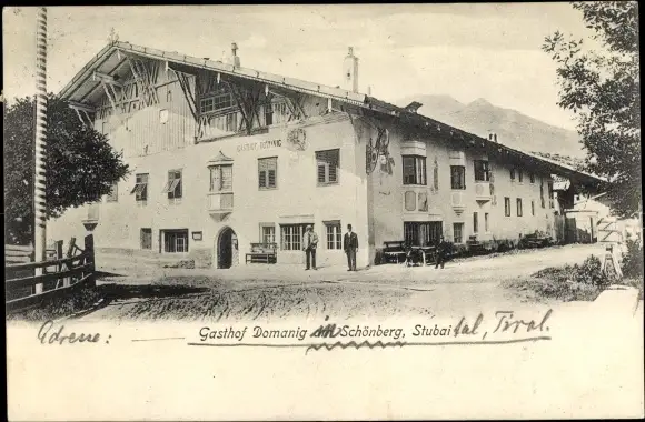 Ak Schönberg im Stubaital in Tirol, Gasthof Domanig