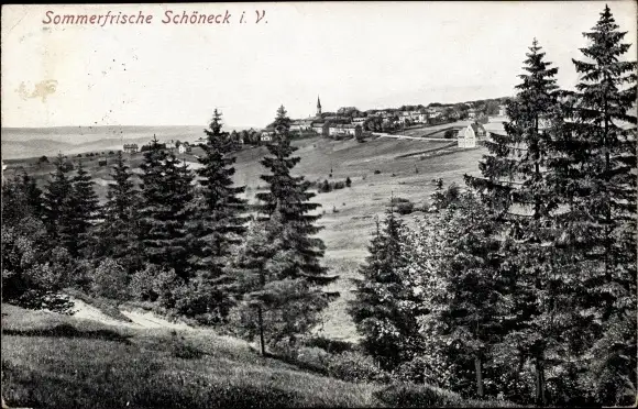 Ak Schöneck Vogtland, Panoramablick auf den Ort mit Landschaft