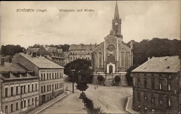 Ak Schöneck im Vogtland, Kirchplatz mit Kirche