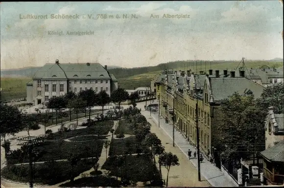 Ak Schöneck im Vogtland Sachsen, Albertplatz, Königl. Amtsgericht