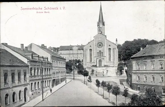 Ak Schöneck im Vogtland, Unterer Markt, Kirche