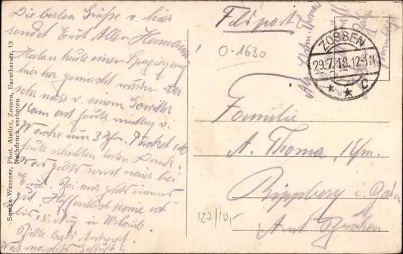 Zustand, siehe Scan, gelaufen, 1918 - ca 14 cm X 9 cm