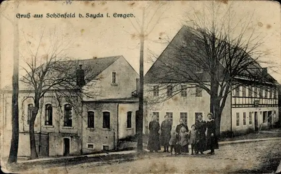 Ak Schönfeld bei Sayda Olbernhau, Teilansicht, Wohnhäuser, Anwohner