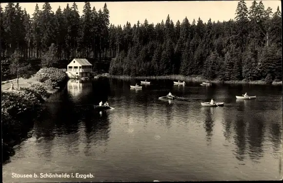 Ak Schönheide im Erzgebirge Sachsen, Partie am Stausee, Ruderboote