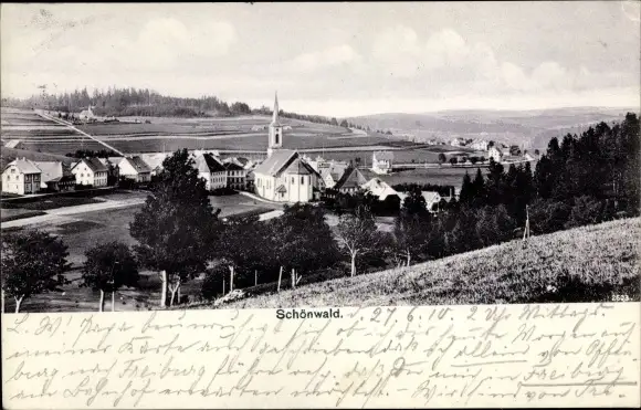 Ak Schönwald im Schwarzwald Baden, Ortsansicht, Kirche