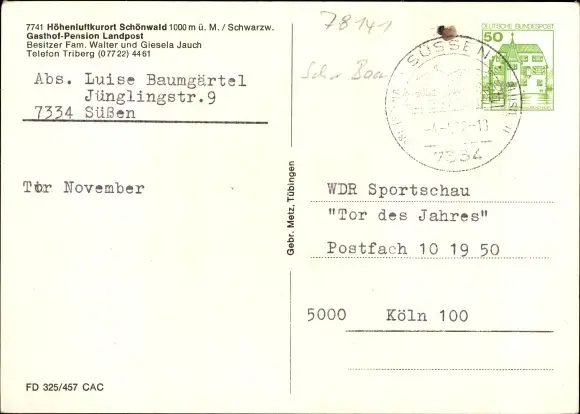 Zustand, siehe Scan, gelaufen- Besitzer Fam. Walter und Gisela Jauch - ca 15 cm X 11 cm