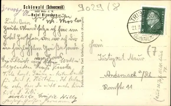 Ak Schönwald im Schwarzwald, Hotel Hirschen