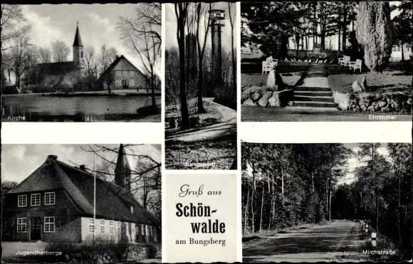 Ak Schönwalde am Bungsberg in Ostholstein, Ehrenmal, Kirche, Jugendherberge, Michstraße