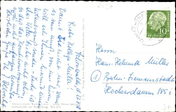 Zustand, siehe Scan, gelaufen, 1958 - ca 14 cm X 9 cm