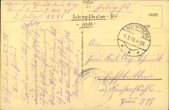 Zustand, siehe Scan, gelaufen, 1918 - ca 14 cm X 9 cm