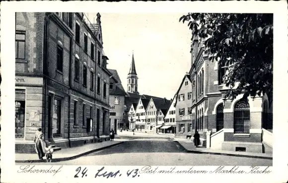 Ak Schorndorf in Württemberg, Post, Unterer Markt, Kirche