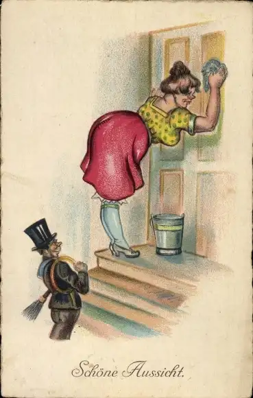 Ak Schornsteinfeger beäugt Po der Putzfrau
