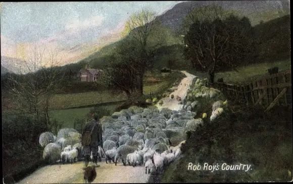Ak Schottland, Rob Roy's Country, Schäfer mit Schafherde