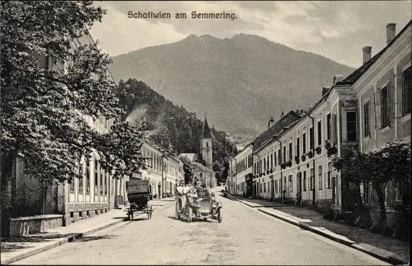 Ak Schottwien in Niederösterreich, Straßenpartie mit Blick zur Kirche, Semmering