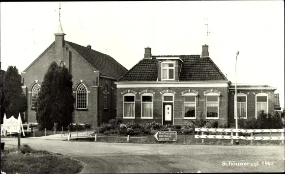 Ak Schouwerzijl Groningen Niederlande, Kirche, Pfarrhaus
