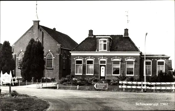 Ak Schouwerzijl Groningen Niederlande, Kirche, Pfarrhaus