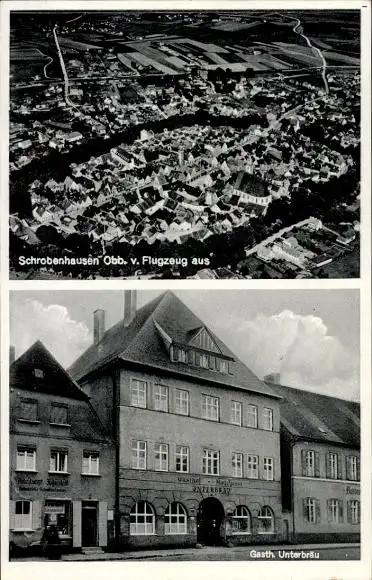 Ak Schrobenhausen in Oberbayern, Fliegeraufnahme, Gasth. Unterbräu
