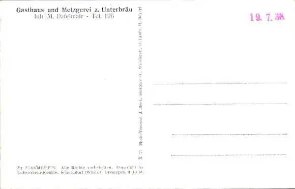 Zustand, siehe Scan, ungelaufen, 1938- Nr. 217??, Inh. M. Dafelmair - ca 3 cm X 5 cm