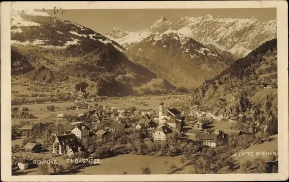 Ak Schruns in Vorarlberg, Totalansicht mit Zimbaspitze