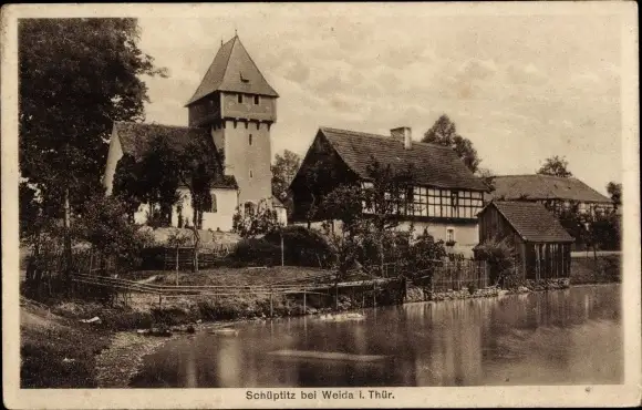 Ak Schüptitz Weida Thüringen, Uferpartie