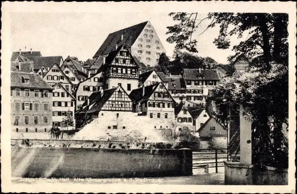 Ak Schwäbisch Hall, Alte Häusergruppe an der Stadtmauer