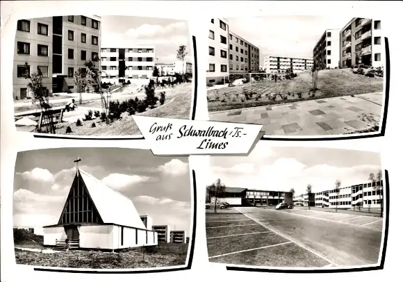 Ak Schwalbach am Taunus Hessen, Limes, Wohnsiedlung, Kirche
