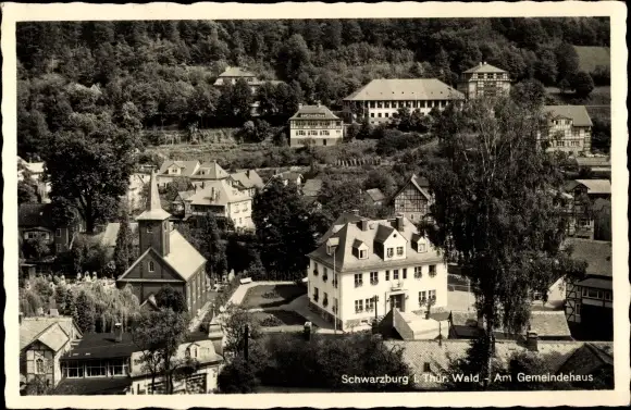 Ak Schwarzburg Thüringer Wald, Kirche mit Gemeindehaus und Forstschule