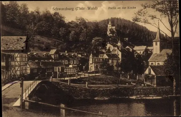 Ak Schwarzburg Thüringer Wald, Partie an der Kirche