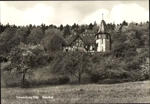 Ak Schwarzburg in Thüringen, Bahnhof, Sicht durch Bäume