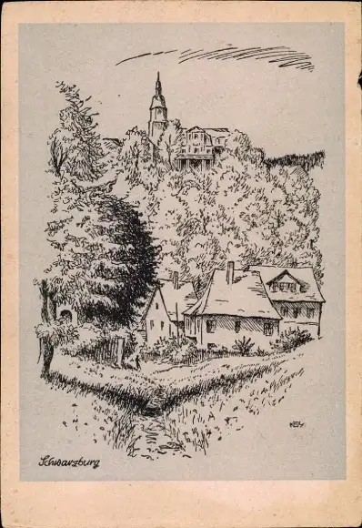 Ak Schwarzburg in Thüringen, Teilansicht, Kirche