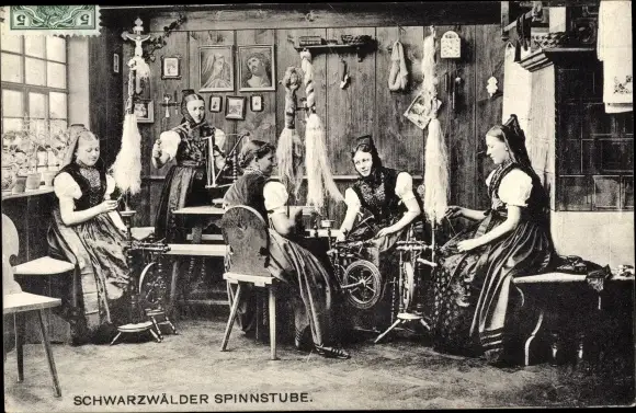 Ak Schwarzwälder Spinnstube, Frauen in Trachten