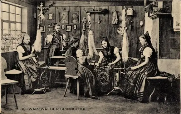 Ak Schwarzwälder Spinnstube, Frauen in Trachten