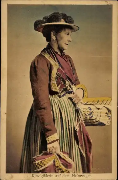 Ak Schwarzwälder Trachten, Kinzigtälerin auf dem Heimweg