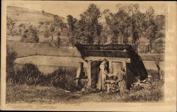 Ak Schwarzwald, Milchkühlhütte, Frau mit Kind