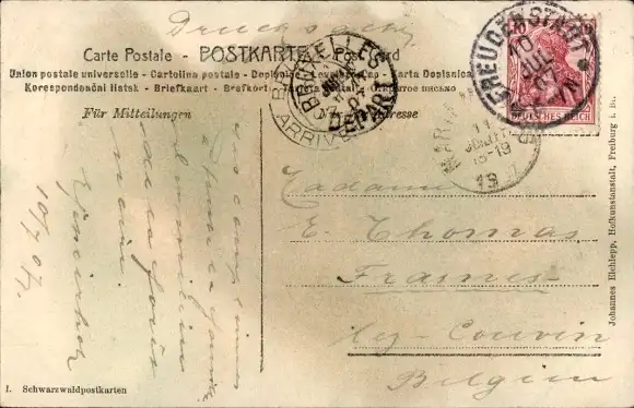 Zustand, siehe Scan, gelaufen, 1907 - ca 14 cm X 9 cm