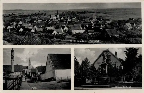 Ak Schwebenried Arnstein in Unterfranken, Gesamtansicht, Straßenpartie, Kirche, Kriegerdenkmal