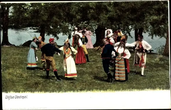 Ak Schweden, Väfoa Vadmal, Tänzer in schwedischen Trachten