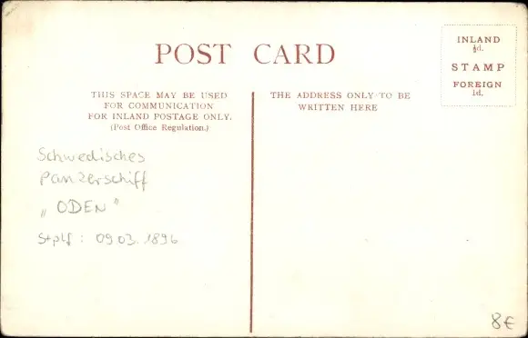 Ak Schwedisches Kriegsschiff, Küstenschutz Panzerschiff Oden