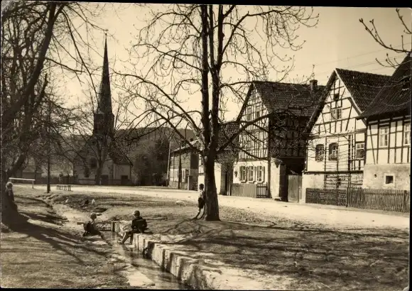 Ak Schweinitz Pößneck in Thüringen, Fachwerkhäuser, Kirche, Fluss