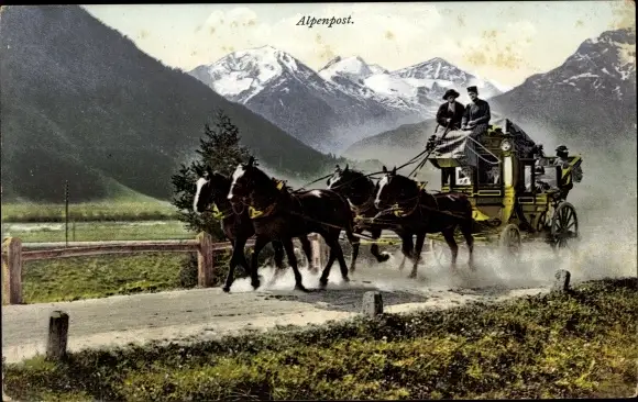 Ak Schweiz, Alpenpost, Postkutsche, Vierergespann