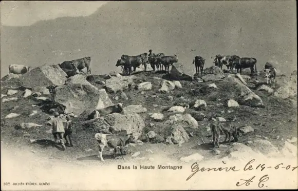 Ak Schweiz, Dans la Haute Montagne, Rinder im Gebirge