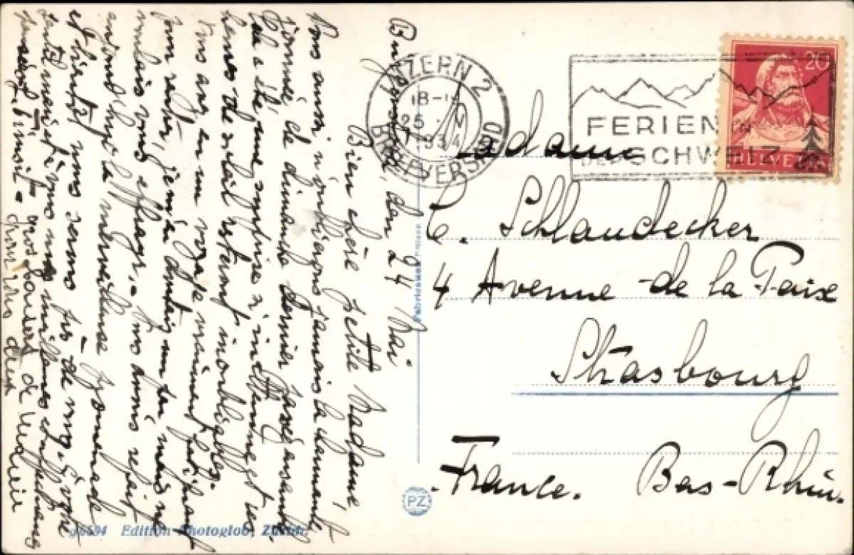 Zustand, siehe Scan, gelaufen, 1934 - ca 14 cm X 9 cm