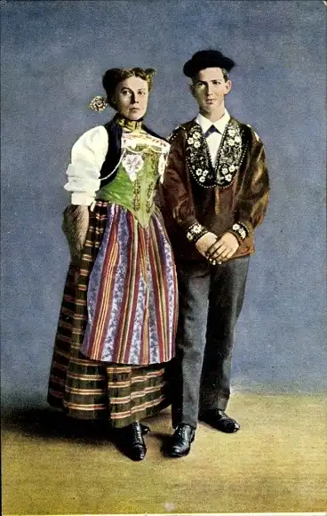 Ak Schweiz, Mädchen und Bursche aus Unterwalden, Volkstracht