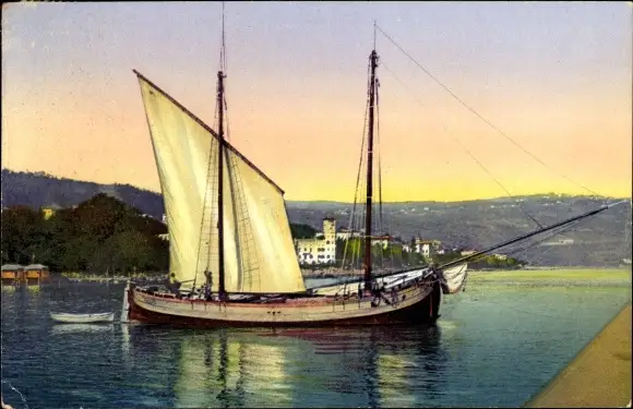 Ak Schweiz ?, Segelboot, Abenddämmerung