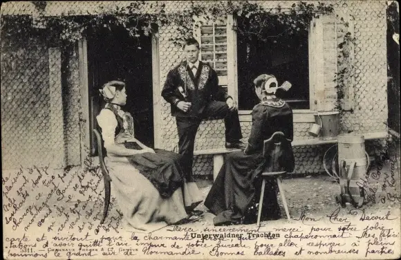 Ak Schweiz, Unterwald, Frauen und Mann in Trachten