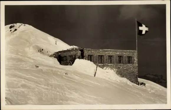 Ak Schweiz, Weißfluhhütte, Schweizerische Fahne