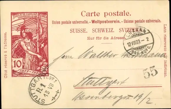 Ak Schweiz, Weltpostverein, stehende Helvetica, Universal Postal Union UPU, Jubiläum
