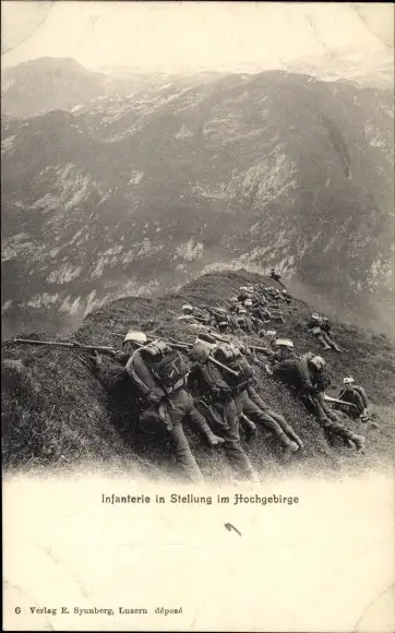 Ak Schweizer Armee, Gebirgstruppen, Infanterie in Stellung im Hochgebirge