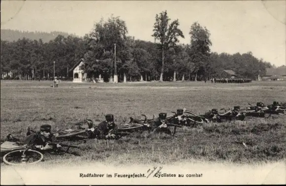 Ak Schweizer Armee, Radfahrer im Feuergefecht, Cyclistes au combat
