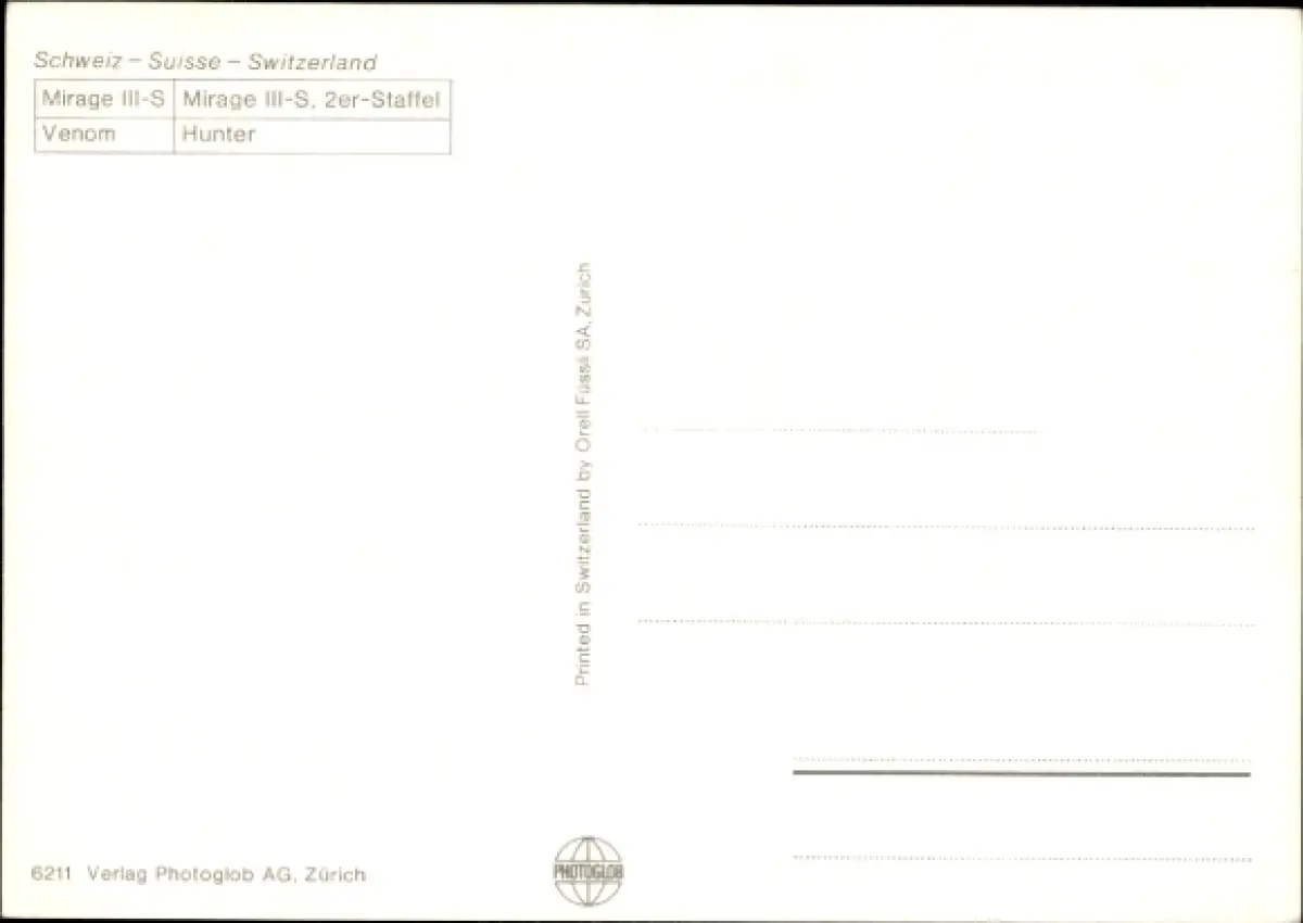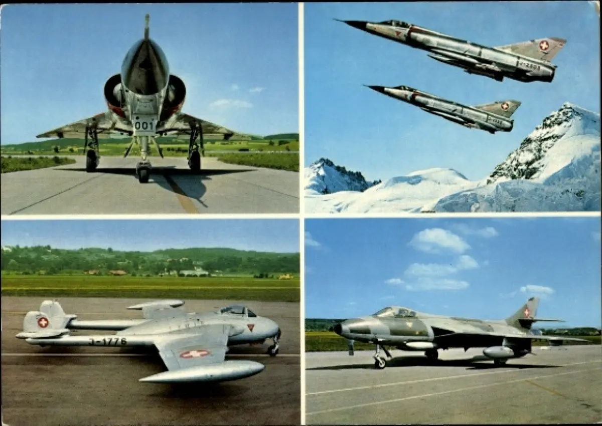 Ak Schweizer Militärflugzeuge, Kampfflugzeuge, Mirage III-S, 2er-Staffel, Venom, Hunter